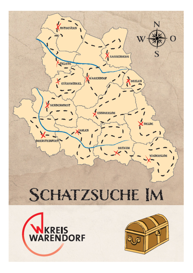 Das Thema Naherholung steht in diesem Jahr im Mittelpunkt der Schatzsuche im Kreis Warendorf. Im gesamten Kreisgebiet gibt es Orte, Plätze und Routen, die zum Verweilen, Erkunden und Genießen einladen. Einige davon sind schon über die Stadt- und Gemeindegrenzen hinaus bekannt, andere sind vielleicht noch „Geheimtipps“.