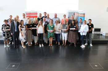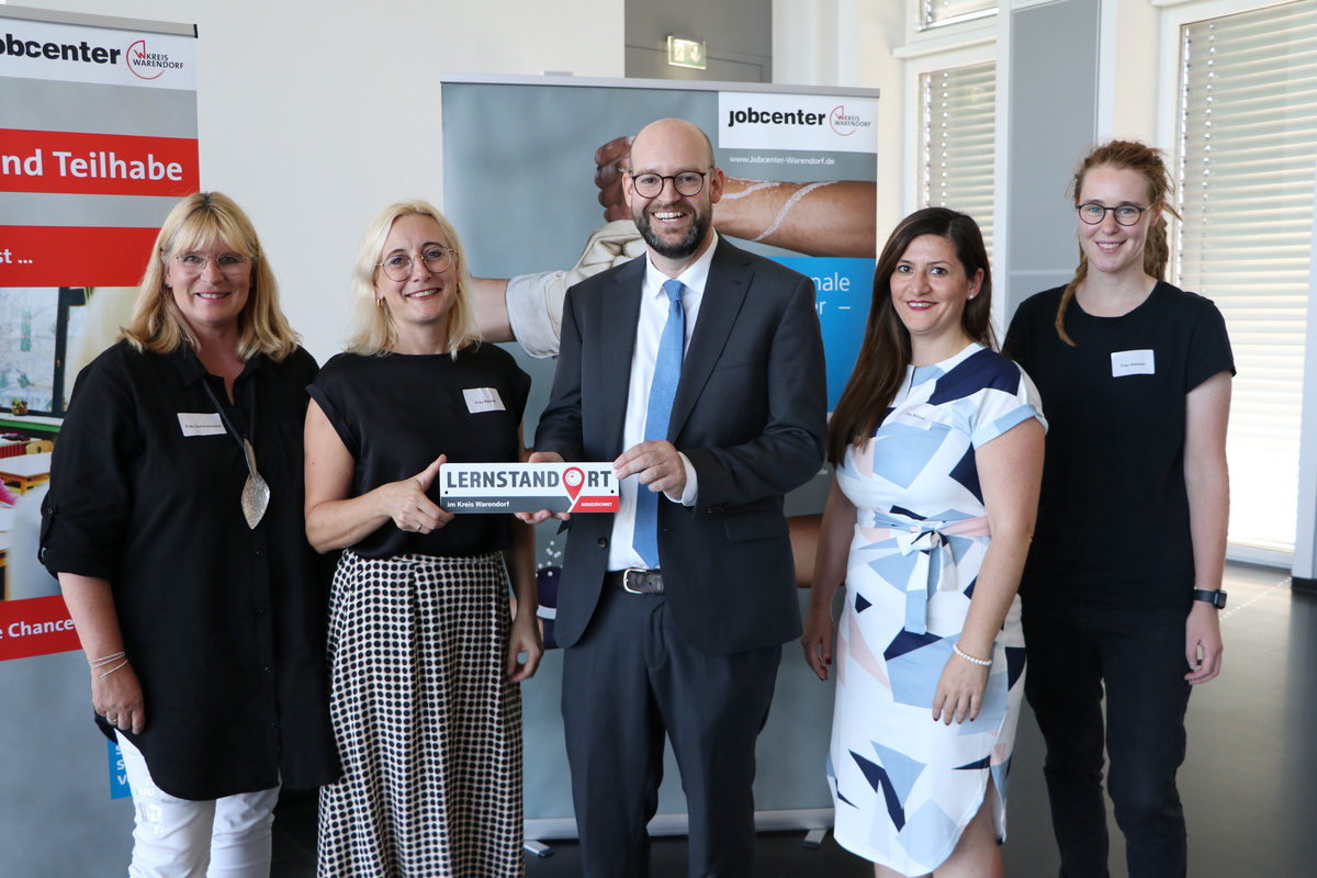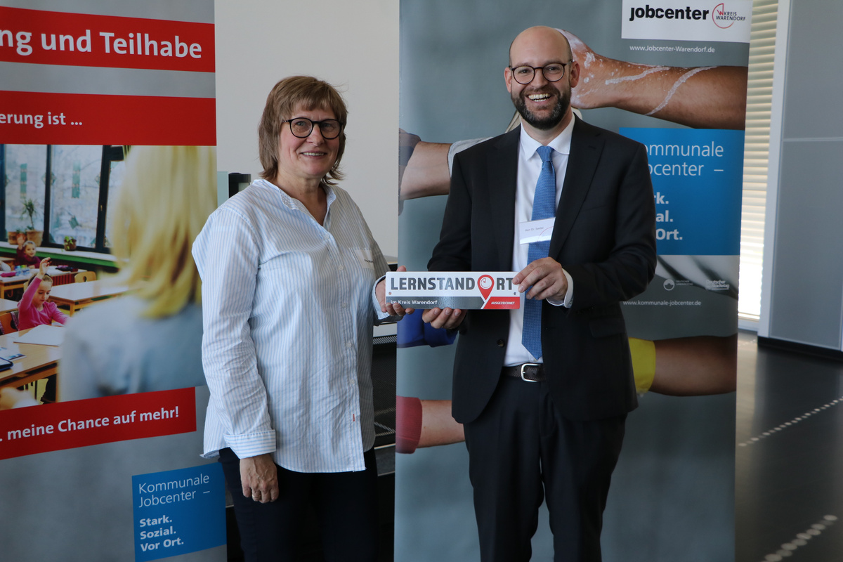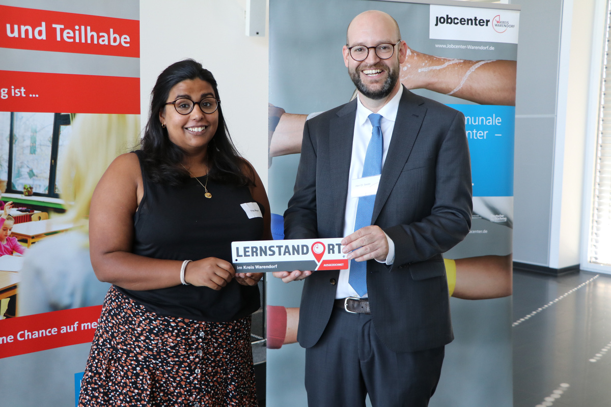 Das Jobcenter Kreis Warendorf hat kürzlich acht weitere Schulen aus dem Kreis als Lernstandort ausgezeichnet. Bei der feierlichen Übergabe der Lernstandort-Schilder sagte Jobcenter-Amtsleiter Dr. Ansgar Seidel: „Ich möchte mich heute bei Ihnen für die tolle Umsetzung an den Schulen bedanken. Sie haben neben den alltäglichen Aufgaben viel Arbeit in den Aufbau der Lernstandorte investiert.“ Seit 2020 wurden insgesamt 44 Schulen als Lernstandort ausgezeichnet. Weitere Schulen bauen aktuell einen Lernstandort auf. „Wir sind davon überzeugt, dass es sich auf Dauer auszahlt, möglichst früh in Bildung zu investieren, denn je früher ein Euro investiert wird, desto größer ist seine Wirkung“, zeigte sich Dr. Seidel vom Projekt Bildung und Teilhabe überzeugt.