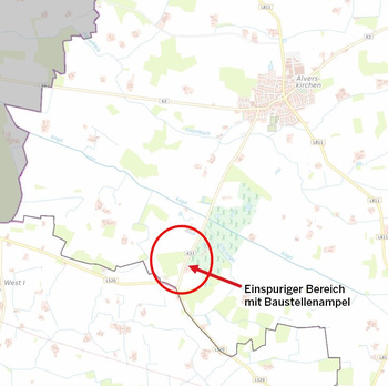 Für die Durchführung der Arbeiten ist es erforderlich den Straßenverkehr einspurig mittels Lichtsignalanlage (Baustellenampel) an der Baustelle vorbeizuführen. Für die Beeinträchtigung des Verkehrs bittet der Kreis Warendorf um Verständnis.
