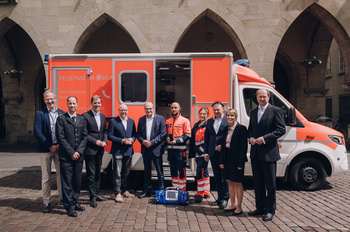Nach mehrjähriger Planung und Vorbereitung startet am 3. Juni der Probebetrieb der Telenotarzt-Zentrale in der Leitstelle der Feuerwehr Münster. Moderne und sichere Digitaltechnik verbindet zwölf Rettungswagen aus Münster und den Kreisen Borken, Coesfeld, Recklinghausen, Steinfurt und Warendorf ab sofort mit der Telenotarzt-Zentrale in Münster. Hierzu wurden Kameras und Übertragungsgeräte installiert, die zu jedem Notfall mitgenommen und auch während der Fahrt ins Krankenhaus störungsfrei betrieben werden können.