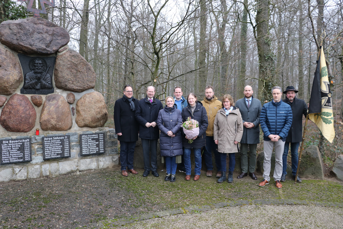 Landrat Dr. Olaf Gericke dankte der Nachbarschaft bei einem Treffen am Ehrenmal für die kontinuierliche Pflege und Betreuung des Ehrenmals in den vergangenen Jahren.„Das Engagement der Nachbarschaft über die vielen Jahre ist beeindruckend. Ich bedanke mich herzlich für diesen unentwegten Einsatz und die Pflege der Anlage“, so der Landrat.