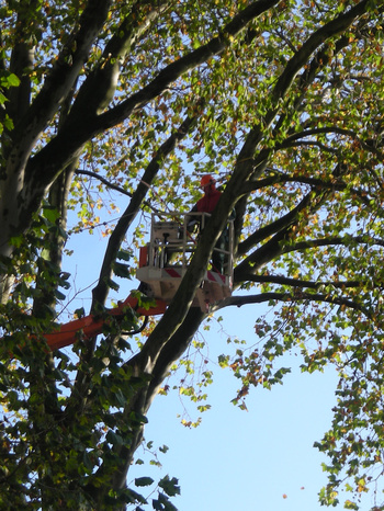Die Maßnahmen reichen von Totholzentfernung bis hin zu Kronensicherungsmaßnahmen. Bei der Totholzentfernung werden trockene und absterbende Äste ausgeschnitten und unerwünschten Entwicklungen in der Krone durch gezielte Schnittmaßnahmen vorgebeugt. Bei der Kronensicherung werden vorhandene Seilsysteme, die die Kronen sichern, geprüft und bei Bedarf ausgetauscht bzw. neu eingebaut.