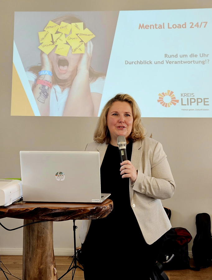 Mental Load bezeichnet die Belastung, die durch das Organisieren von weitgehend unsichtbaren Alltagsaufgaben entsteht. Diese Aufgaben werden insbesondere dann belastend, wenn sie nicht aufgeteilt werden oder werden können. Nicht selten entfällt der größere Anteil solcher Aufgaben auf Frauen. Der Vortrag widmete sich den Alltagsaufgaben, die Frauen im privaten als auch beruflichen Alltag unbewusst übernehmen. Welche Auswirkungen bringen diese Belastungen durch das "Immer-dran-Denken-Müssen" mit sich?