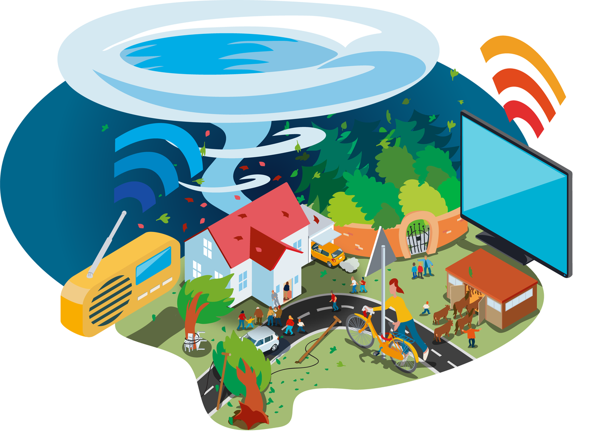 Hochwasser oder heftiger Schneefall mit Lawinen können dazu führen, dass Teile der Bevölkerung von der Außenwelt abgeschnitten werden. Informationen und Warnmeldungen sind überlebenswichtig. Oftmals sind die Eingeschlossenen nur über Rundfunk, Fernsehen oder Internet erreichbar. Fernseher und Internet funktionieren aber nur mit Strom, der möglicherweise auch ausfällt. So bleibt nur das Radio als Hauptwarnmittel. Haben Sie deshalb immer ein batteriebetriebenes Rundfunkgerät mit UKW- und Mittelwellenempfang und Reservebatterien oder ein Kurbelradio im Haus.
