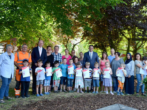 Zehn Jungen und Mädchen aus dem städtischen Kindergarten Rappelkiste freuten sich über Gutscheine des Kreisgesundheitsamtes. Damit können die Kinder sechs Monate lang kostenlos Sportangebote in den örtlichen Sportvereinen nutzen oder einen Schwimmlernkurs besuchen.