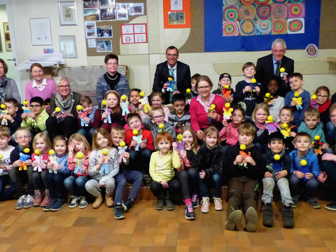 Eine besondere Unterrichtsstunde besuchten Vertreter der AOK NORDWEST, das Gesundheitsamt des Kreises Warendorf sowie der Bürgermeister in einer ersten Klasse an der Wilhelm-Emanuel-von-Ketteler Grundschule in Füchtorf. Im Rahmen des Programms Klasse2000 ging es dabei um das Thema Gesundheit. Insgesamt 36 erste Klassen im Kreis Warendorf nehmen in diesem Schuljahr und in der gesamten Grundschulzeit an dem Gesundheitsförderungsprogramm Klasse2000 teil. „Ich freue mich sehr darüber, dass die AOK auch in diesem Jahr dieses wichtige Gesundheitsprogramm wieder finanziell mit unterstützt“, sagte Brigitte Klausmeier, Gesundheitsdezernentin des Kreises Warendorf.
