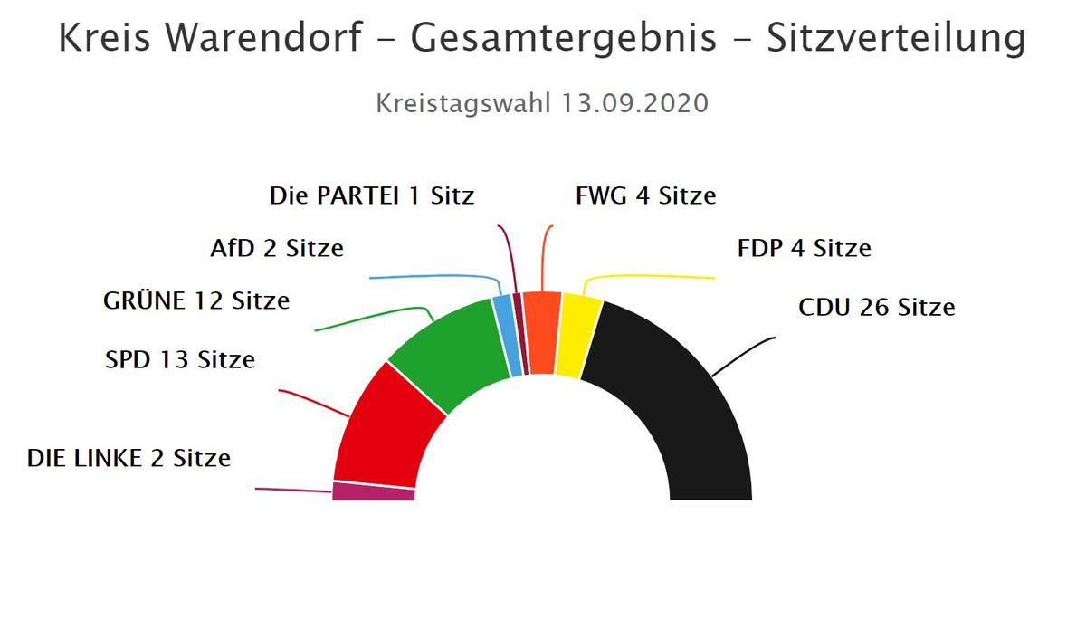Die Sitzverteilung im Kreistag gestaltet sich nach der Kommunalwahl 2020 wie folgt:
