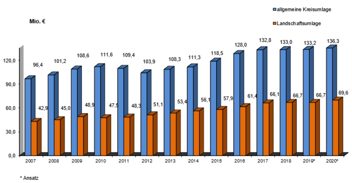 Der Kreishaushalt finanziert sich u.a. über die Kreisumlage. Bei der Ausgestaltung der Haushaltswirtschaft zeigt sich der Kreis Warendorf solidarisch mit seinen kreisangehörigen Städten und Gemeinden. Durch bewusst in Kauf genommene Jahresfehlbeträge bei der Haushaltsplanung konnte die allgemeine Kreisumlage auf möglichst niedrigem Niveau gehalten werden.