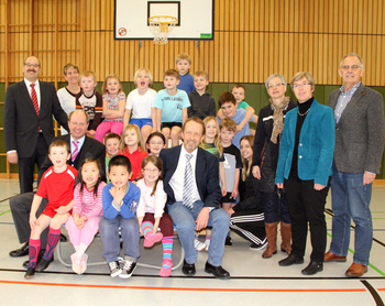 Spielen und Bewegen mit Hilfe von Sportvereinen – und das in der Schule: Das Modellprojekt „Flic Flac Kids“ macht es möglich. In der Offenen Ganztagsschule (OGS) in Drensteinfurt machte sich Landrat Dr. Olaf Gericke zusammen mit Bürgermeister Carsten Grawunder und dem Präsidenten des Kreissportbundes (KSB), Ferdi Schmal, jetzt ein Bild von dem neuen Angebot. Der Kreis Warendorf, der KSB und das Mütterzentrum Beckum e.V. haben mit vielen anderen Kooperationspartnern das Modellprojekt gemeinsam auf die Beine gestellt.