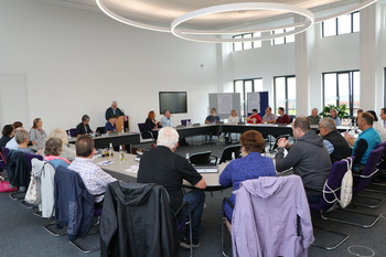 Zu einem Gesamttreffen der Selbsthilfegruppen im Kreis Warendorf hatte das Gesundheitsamt des Kreises gemeinsam mit der Selbsthilfe-Kontaktstelle eingeladen. Gesundheitsamtsleiter Dr. Wolfgang Hückelheim begrüßte 27 Selbsthilfe-Aktive aus 16 Gruppen im Warendorfer Kreishaus. Aktuell gibt es 86 aktive gesundheitsbezogene Selbsthilfegruppen im Kreis Warendorf.