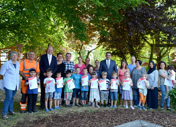 Zwölf Jungen und Mädchen aus dem St. Josef Kindergarten in Ahlen nehmen ein Jahr lang am Projekt „Kindergarten in Bewegung“ in der Einrichtung teil. Landrat Dr. Olaf Gericke überreichte zur Ergänzung des Angebots am Dienstagmittag den Kindern sogenannte Schnuppergutscheine. Damit können die Kinder sechs Monate lang kostenlos Sportangebote in den örtlichen Sportvereinen nutzen oder Schwimmkurse besuchen. In diesem Zeitraum übernimmt das Kreisgesundheitsamt die Mitgliedsbeiträge. Auf diese Weise sollen die Schnuppergutscheine dazu beitragen, Kindern den Zugang in einen Sportverein zu erleichtern.