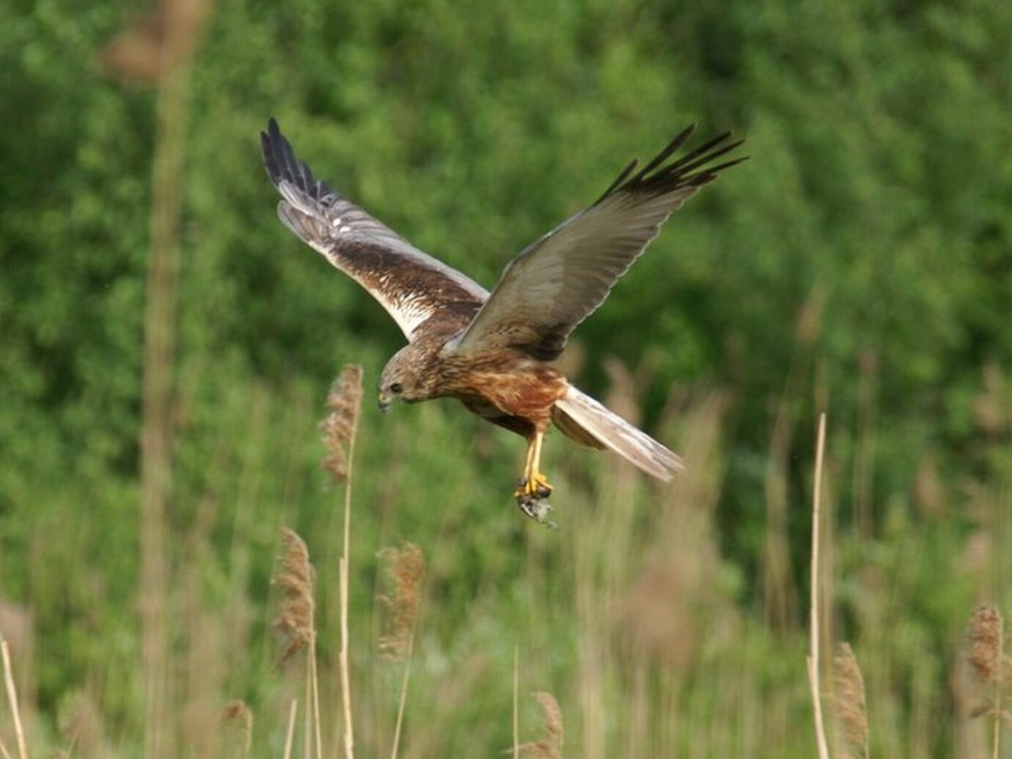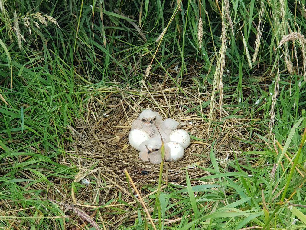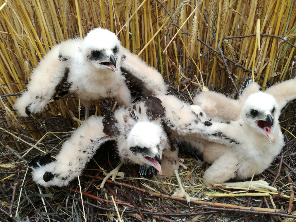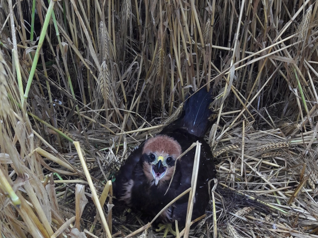 Die Rohrweihe brütet auf dem Boden, bevorzugt in Schilfzonen und Hochstaudenfluren an Kleingewässern. Doch rund ein Drittel der Brutpaare weicht auf Getreide-, Raps- oder Grünlandflächen aus. Dort ist das Risiko groß, dass Gelege bei Mäharbeiten oder Ernte verloren gehen. Um das zu verhindern, ist der Gelegeschutz auf landwirtschaftlichen Flächen ein wichtiger Baustein im Projekt. Mithilfe moderner Wärmebilddrohnen können Nester frühzeitig ausfindig gemacht und nach Rücksprache mit den Bewirtschaftenden geschützt werden. Für Schutzzonen auf Acker- oder Grünland erhalten teilnehmende Betriebe eine Entschädigung für den Ernteausfall.