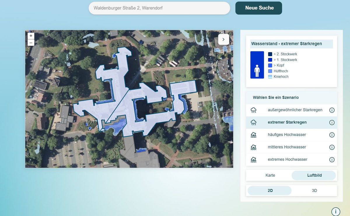 Über die Plattform floodcheck.net können Sie Ihr Gebäude auf mögliche Gefährdung durch Starkregen und Hochwasser überprüfen.